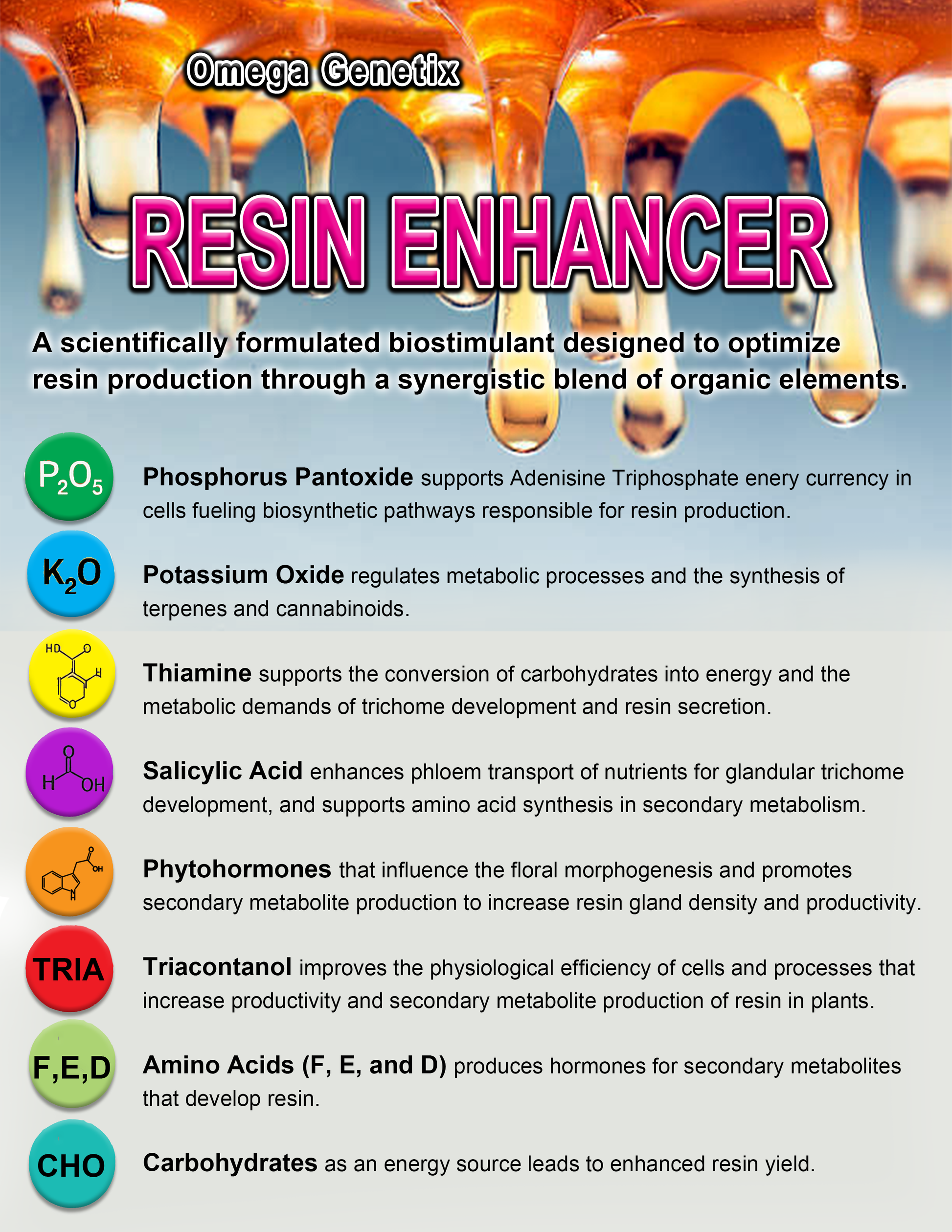 Omega Genetix has developed a Resin Enhancer using the most advance formula of nutrients, vitamins and hormones.