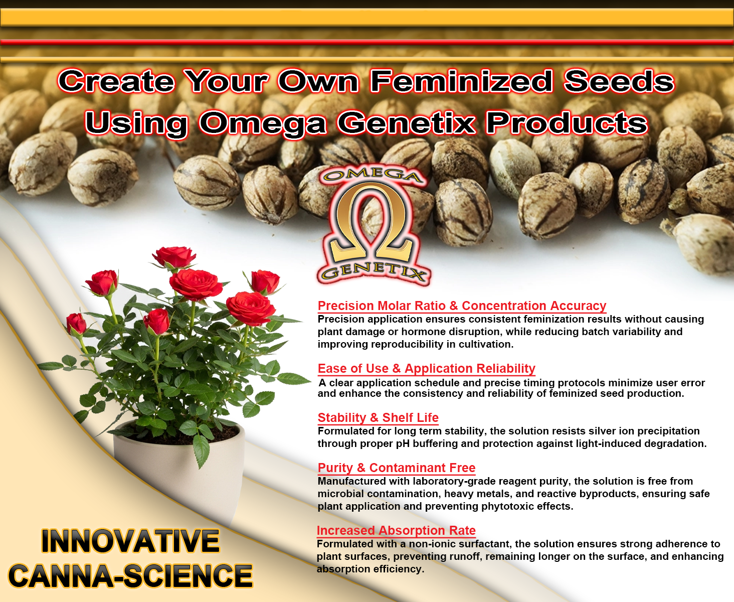 - 🏆 Cannabis Gold Cup winning varieties produced with Omega Genetix products.