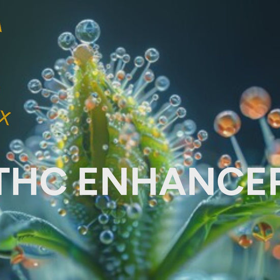 This product contains growth regulators that influence how a plant grows and develops that impact THC production by manipulating hormonal balances that control flowering, resin production, and overall plant health. Additionally, it contains natural plant extracts and enzymes that trigger the plant to produce more terpenes and cannabinoids, including THC.