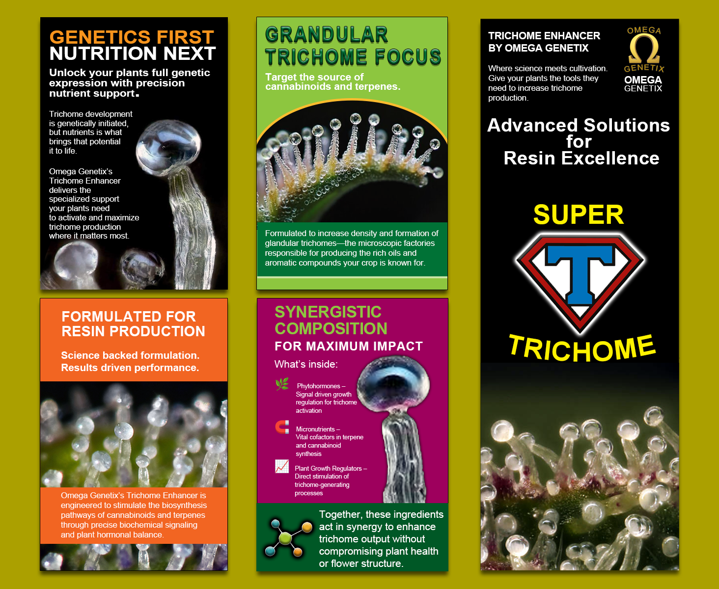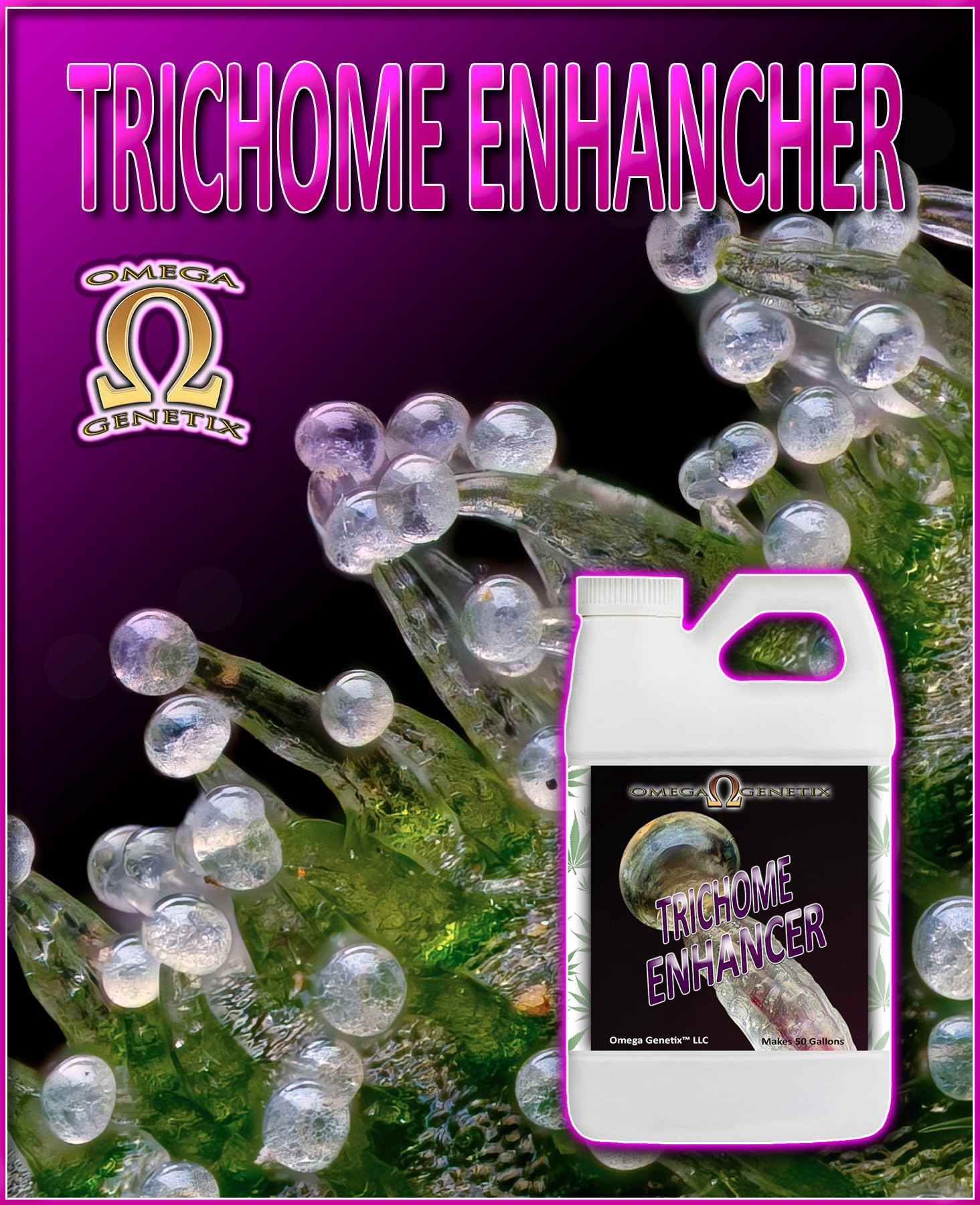 Nutrient management is the most important factor after genetics in trichome production. Omega Genetix has formulated a Trichome Enhancer combining hormones, minerals and growth regulators to formulate an advanced cannabis Trichome Enhancer.